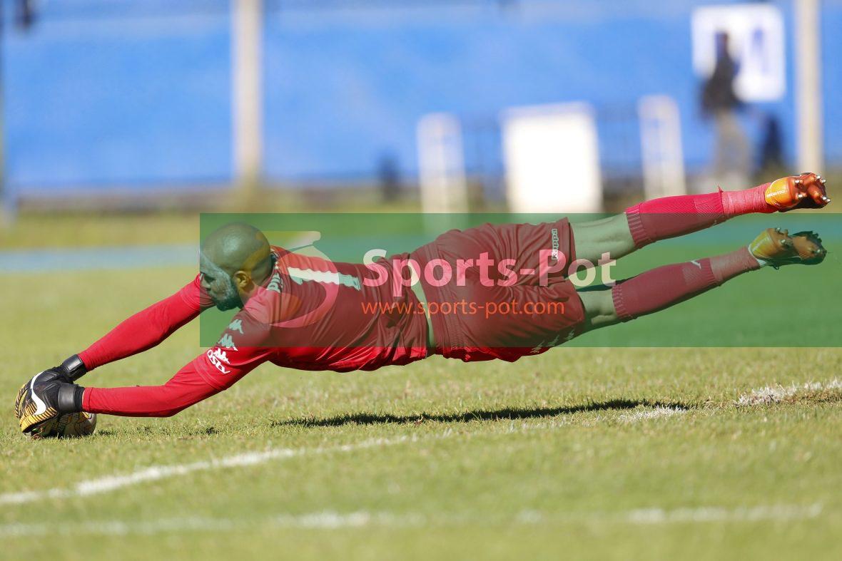• Caption: R. Pieterse of SuperSport United dives full length to save a shot from Gor Mahia during their CAF Confederation Cup first round, first leg match on April 8, 2018 at Kenyatta Stadium, Machakos. Gor Mahia won 1-0. Photo/MOHAMMED AMIN/www.sports-pot.com